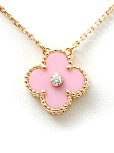 ヴァン クリーフ&アーペル ヴィンテージ アルハンブラ ダイヤネックレス ピンクオパール