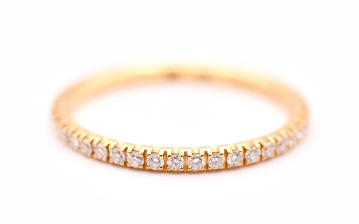 指輪全周にわたって78石(計0.62カラット)のダイヤモンドを敷き詰めたフルパヴェセッティングが、眩いほどの輝きを放ちます。