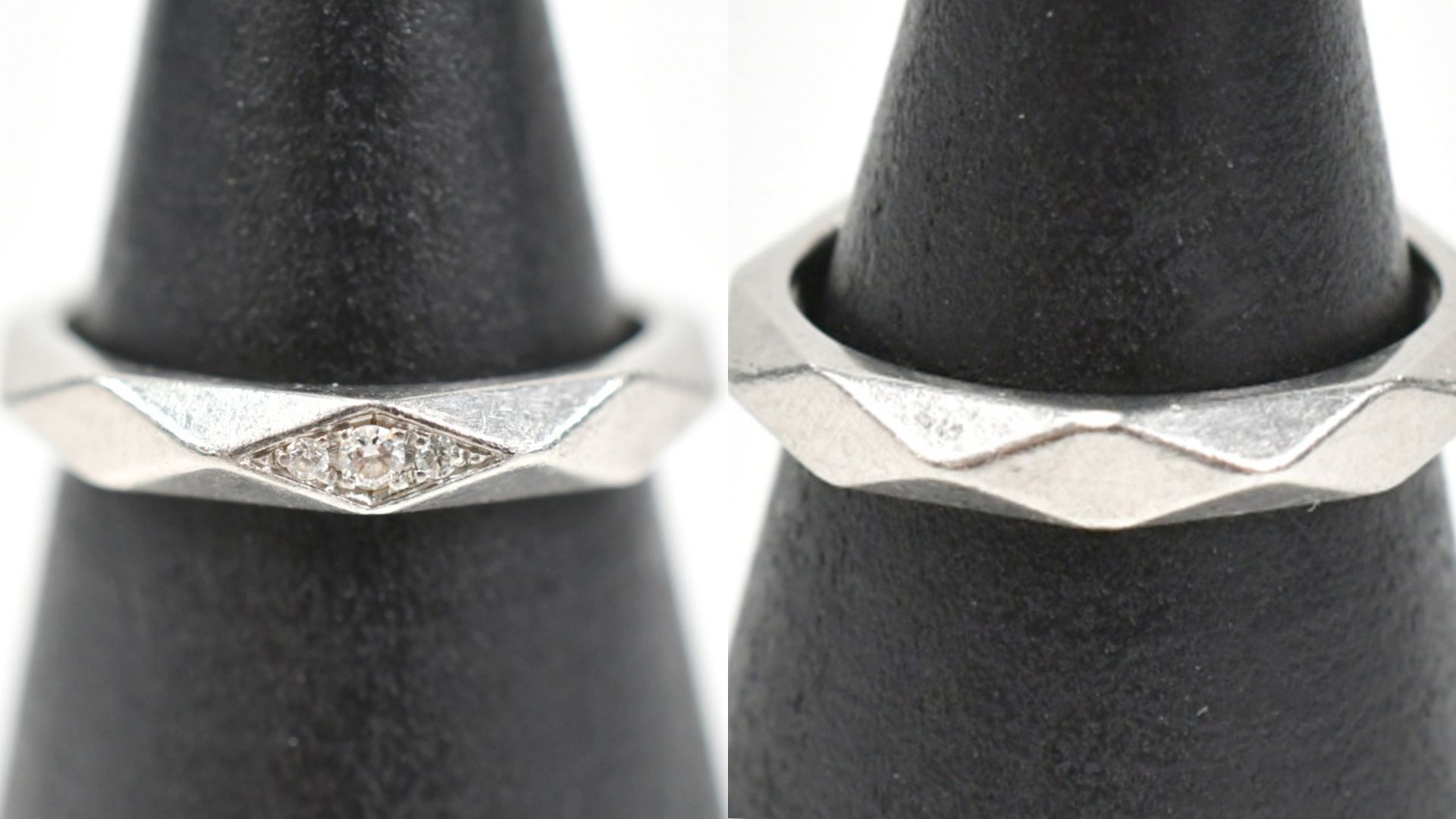 プラチナの上質な輝きと多面カットの造形が指元を美しく引き立て、控えめながらも確かな存在感を放ちます。結婚指輪と婚約指輪の重ね着けにも相性がよく、スタイリッシュに楽しめるのも魅力です。