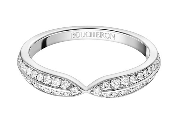 純白の輝きは永遠の愛を象徴し、タイムレスで洗練された印象を演出します。ブシュロンの高度なクラフツマンシップが息づく、まさに芸術的な指輪です。