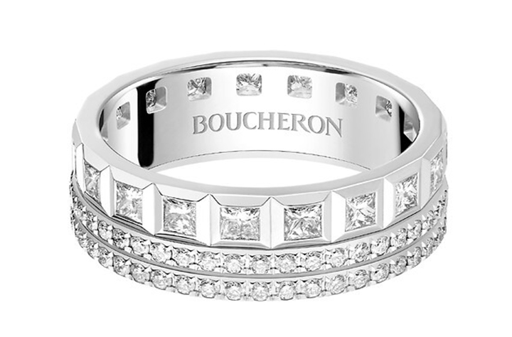 異なるカットのダイヤモンドが織りなす立体的な輝きが、手元に気品と華やかさを添える逸品です。ブシュロンのクラフツマンシップが凝縮された、永遠に輝き続けるリングといえるでしょう。