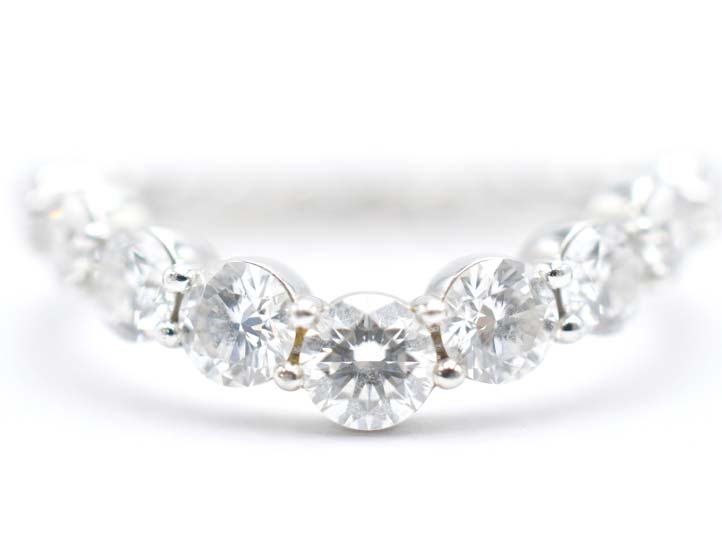 緩やかなカーブを描く独特のフォルムが特徴で、婚約指輪のセンターストーンに寄り添うように美しく調和します。