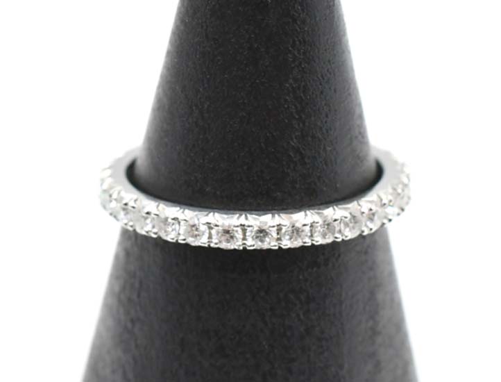 20石のラウンドダイヤモンド(計約2.10カラット)が指元で華やかな煌めきを放ち、エタニティリングならではの存在感を堪能できます。ブライダルリングとしてはもちろん、ファッションリングとしても楽しめるジュエリーです。