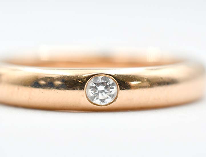 小粒ながら5石が連なることで指元に上品な輝きを添え、永遠の愛と誓いを象徴するデザインとして選ばれています。クラシカルな雰囲気とモダンな感性が調和し、普遍的な美しさを感じさせる点も魅力です。