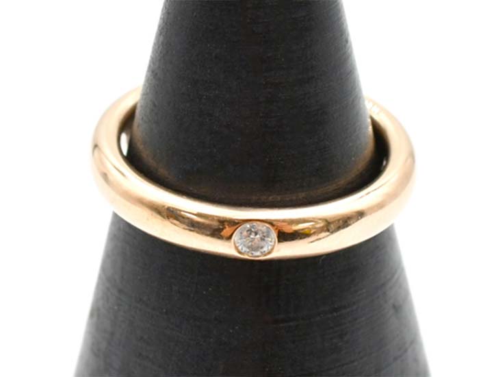 華奢なリングに小粒のラウンドブリリアントカットダイヤモンドを1石あしらった、シンプルなデザインが特徴です。
