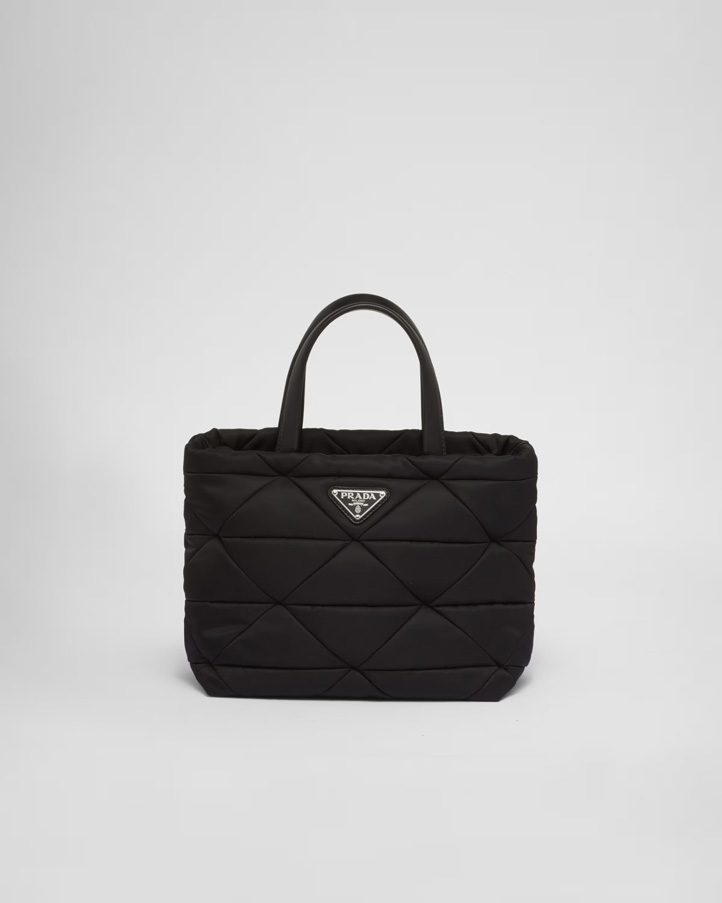 「スモール パデッドRe-Nylon トートバッグ」は、海から回収されたプラスチックを再利用したリサイクルポリアミド素材「Re-Nylon」を使用し、ふっくらとしたパッド入りの質感が特徴的なトートバッグです。取り外し可能なミニポーチやロゴ入りショルダーストラップを備えています。