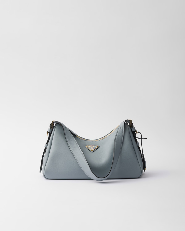 「プラダ エメ ミディアム レザー ショルダーバッグ」は2024年秋冬広告キャンペーンにて登場。1990年代の洗練されたミニマリズムを想起させるアイテム。柔らかなシルエットで、ショルダーにもクロスボディにも使える、こなれ感のあるデザインが魅力です。