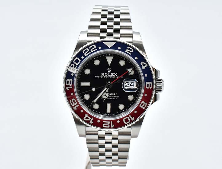GMTマスターIIは、実用性とスポーツロレックスらしい存在感を兼ね備えたモデルです。複数のタイムゾーンを表示できる機能性に加え、カラーバリエーションの豊富さも人気の要因となっています。