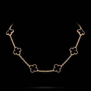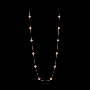 アルハンブラの中でも最も小ぶりなモチーフが特徴のシリーズ。ロングネックレスでは、複数のモチーフが連なることで存在感のある仕上がりになっています。