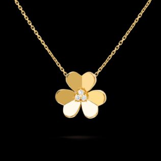 アルハンブラコレクションの中でも単体使いしやすい“1モチーフペンダント”。シンプルながら、四つ葉のクローバーをかたどったアイコニックなデザインは、ヴァンクリの象徴として根強い人気を誇ります。