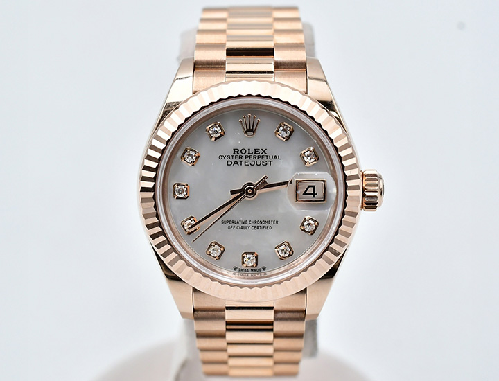 | オイスターパーペチュアル28 Ref.276200 | レディデイトジャスト Ref.279459RBR パヴェダイヤモンド入りダイアル |