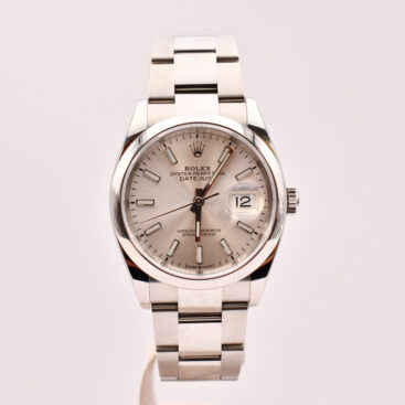 Ref.126200は36mmケースを採用した現行モデル。オイスタースチールのみを使用したシンプルな仕様で、デイトジャストの中でも落ち着いた印象を与える一本です。