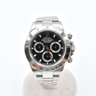 「最後のステンレスベゼル・デイトナ」としてコレクターの評価が高く、中古市場でも根強い人気を誇ります。流通量は減少傾向にあり、良質な個体ほど価格は上昇傾向にあります。
