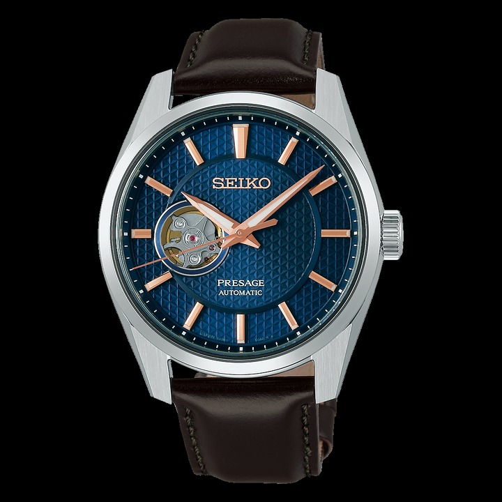 SEIKOの上位ライン「SEIKO PRESAGE(セイコー プレサージュ)」は、日本の美意識と機械式時計の技術が融合したシリーズ。「Sharp Edged Series SARX099」は、くっきりとしたエッジの効いたケースラインと、日本の伝統文様・麻の葉パターンを文字盤に取り入れた美しい仕上がりが特徴です。