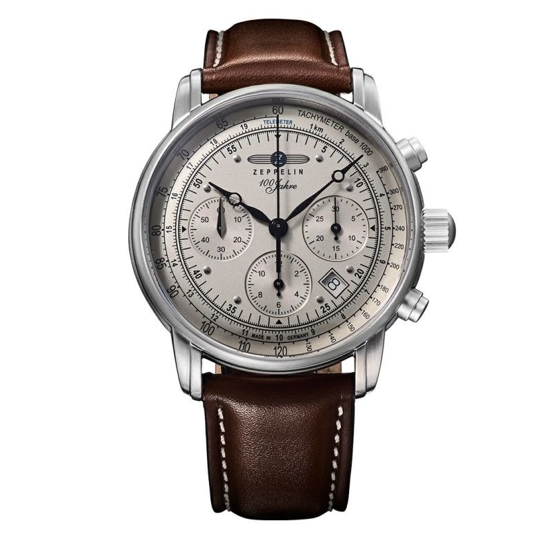 ドイツブランド「ZEPPELIN(ツェッペリン)」の「100周年記念シリーズ」は、飛行船をモチーフにした独自のクラシックデザインが魅力です。PREMIUM EDITION 8618-1は、自動巻きクロノグラフムーブメント(Sellita SW510)を搭載し、タキメーターやテレメーターを備えた本格仕様の1本。