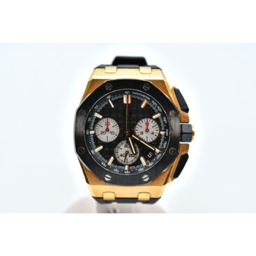 複雑機構である永久カレンダーを搭載したローズゴールドモデル。技術的な価値と素材の価値に加え、すでに生産が終了していることから流通量が極めて少なく、現在は非常に稀少性の高い一本となっています。ロイヤルオークを大型化し、よりスポーティなデザインにしたオフショアライン。ローズゴールドとラバーストラップの組み合わせは、ラグジュアリーでありながら現代的な人気を博しています。
