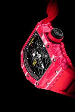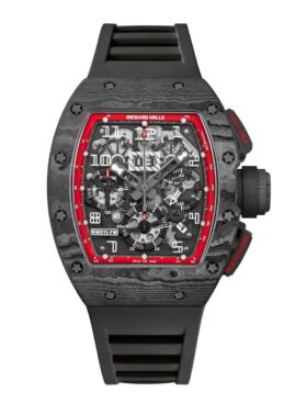 ブランド初期を支えたフライバッククロノグラフモデル。フライバックは計測中にワンプッシュでリセットと再スタートが可能な高度なクロノグラフ機構で、航空計器由来の高い実用性と技術力を示す複雑機能です。リシャール・ミルのアイコン的なデザインと高い人気から、安定した需要があります。テニスプレーヤーのラファエル・ナダルとのコラボレーションモデルの流れを汲む、軽量で耐衝撃性に優れたモデル。カーボン素材の使用など、リシャール・ミルの技術革新を象徴しています。