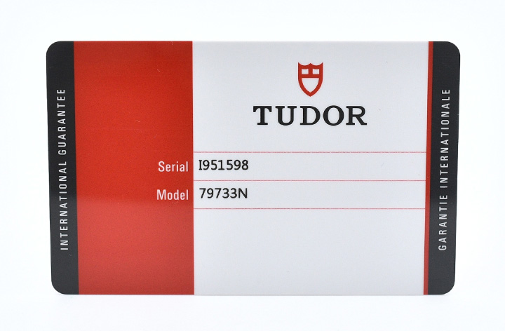本物には基本的にギャランティカードが付属しています。とくに2020年以降はギャランティカードにNFCチップが搭載されており、NFC対応のスマホなどをかざすと、TUDOR Watch IDアプリを通じて型番や保証期間などの商品情報が表示されるしくみになっているのです。